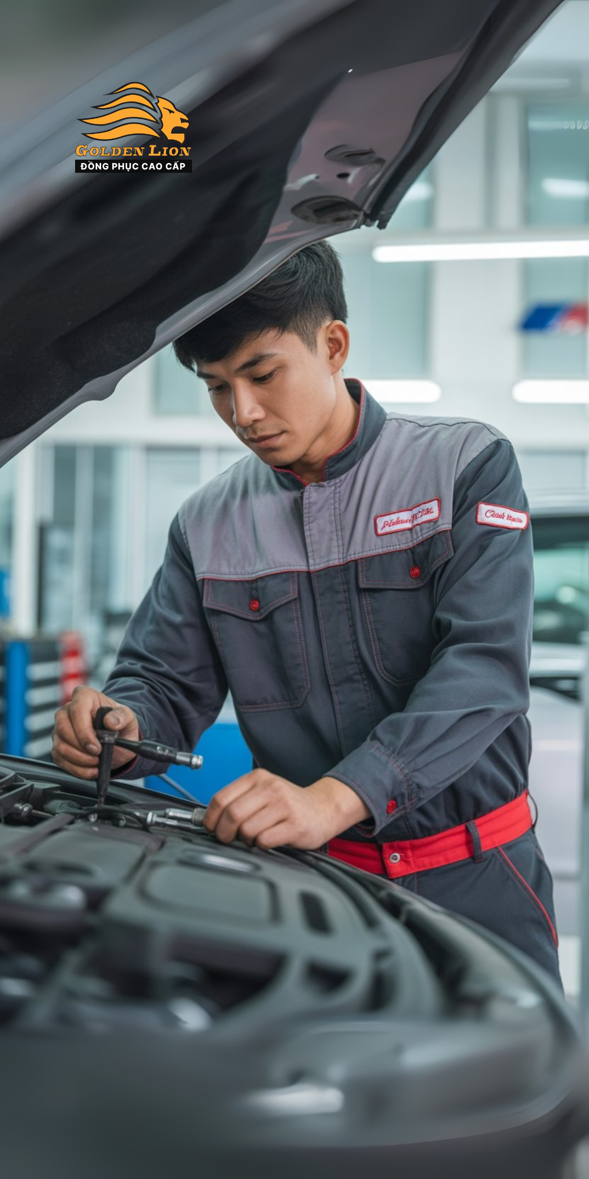 Trong môi trường làm việc kỹ thuật trong công xưởng yêu cầu vận động liên tục và tiếp xúc thường xuyên với máy móc, đồng phục không chỉ là trang phục – mà còn là công cụ hỗ trợ đắc lực. Với mẫu đồng phục kỹ thuật ô tô của Sư Tử Vàng, từng thao tác trong công việc đều được tính toán để thiết kế ra bộ đồng phục đảm bảo sự thoải mái và an toàn tối đa.